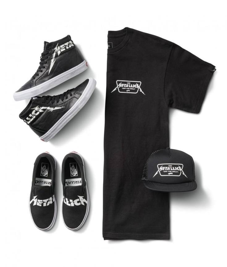 Saiu hoje, dia 16 de fevereiro, a terceira collab da Vans com o Metallica. A coleção traz quatro peças: um Slipon, um Sk8-hi, uma camiseta e um boné. Nos lançamentos, você pode ver o recém-modificado logo novo da banda, que está presente em seu último álbum, o “Hardwired to Self Destruct”.