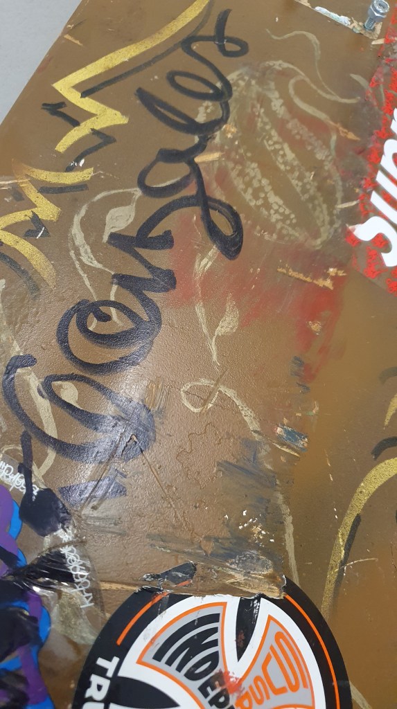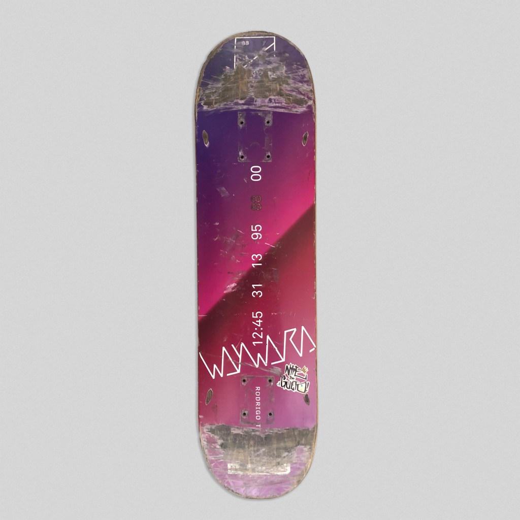 Douglas Prieto: Eu não pensei em fazer isso de primeira. O shape que começou a história é um do Tom Knox, que o Bam (Allan Carvalho) pegou, já que ficou junto dos caras da New Balance em uma tour que fizeram por aqui. O Tom deu o shape para ele usar, ele ficou um tempo com ele e não sei muito bem o porquê de eu querer guardar esse shape, acho que pelo fato do Tom Knox ser um skatisa foda.