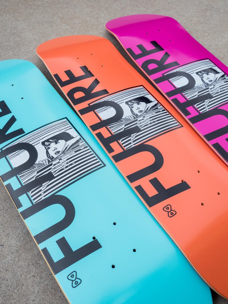 Pensando nisso tudo, a gente foi trocar uma ideia com a Future Skateboards, ou melhor, com o Fabinho, um dos caras por trás da marca e o responsável pelos gráficos dos shapes desde o começo. A Future, que em 2010 resolveu ter seu CNPJ e ser uma marca de verdade, é uma das mais conceituadas no mercado brasileiro, tanto pelos seus feitos, quanto pelo seu time, e seus shapes são memoráveis por seus gráficos.