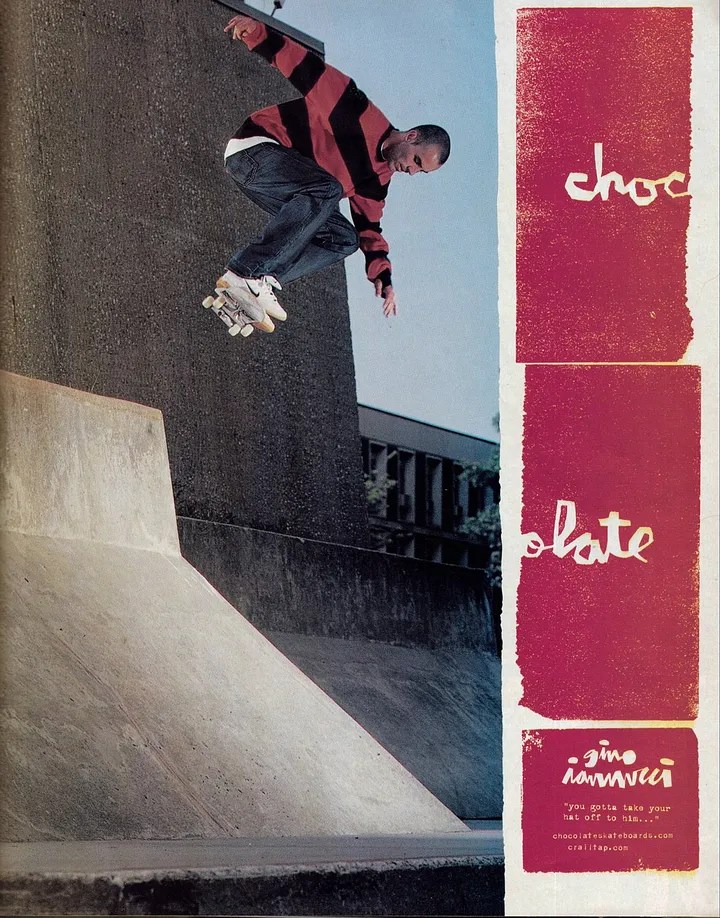 Mas mercadologicamente, essa fusão de estilos só foi se concretizar mesmo no fim do século XX, com personagens clássicos do skate mundial aderindo à essa moda. Acho que aqui a gente já pode começar a falar do Gino Iannucci, né?