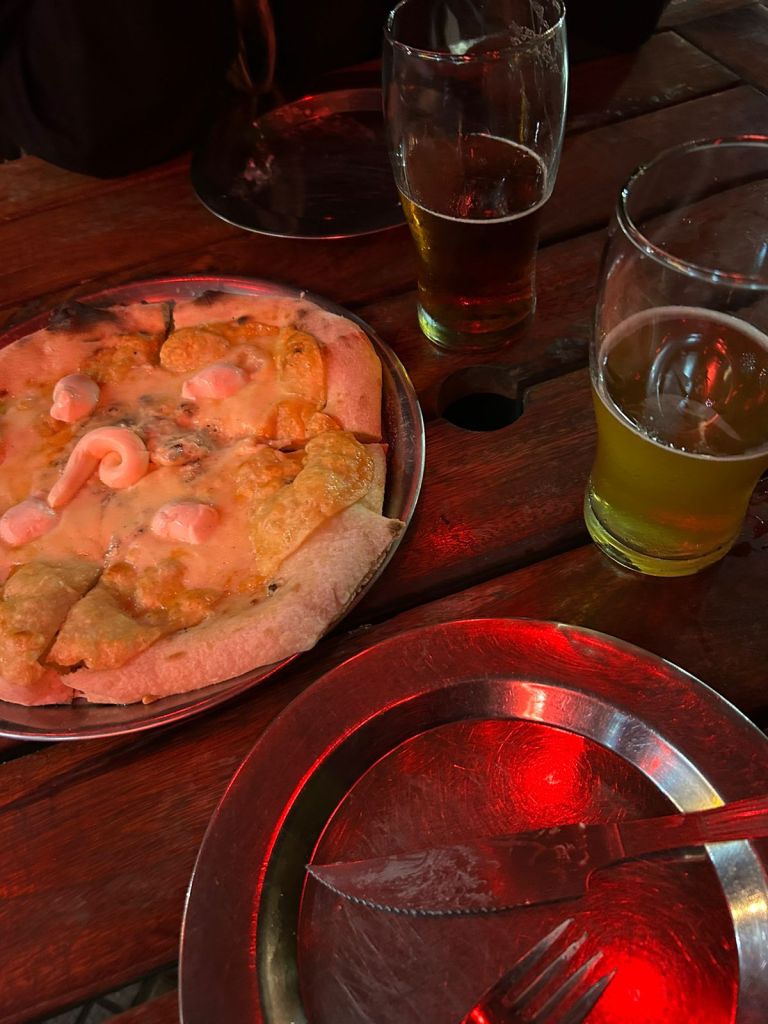 Já nas comidas, em Palermo a gente macetou uma pizza napoletana de quatro queijos muito boa. Lá tem bastante bar e restaurante e é um lugar legal de colar!